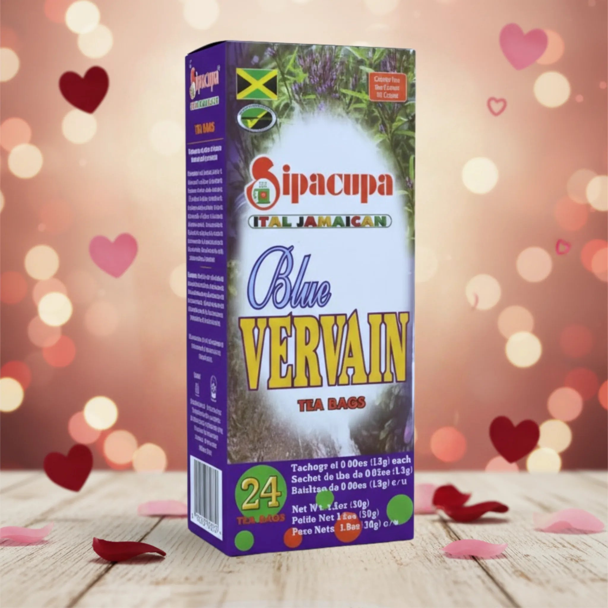 • Sipacupa Blue Vervain Tea Bags are crafted from 100% Blue Vervain roots and leaves, sourced from Jamaica. Each box contains 24 sachets of this authentic Ital blend, ensuring a completely natural and flavorful experience. Perfect for providing calming and healing benefits to your daily routine.